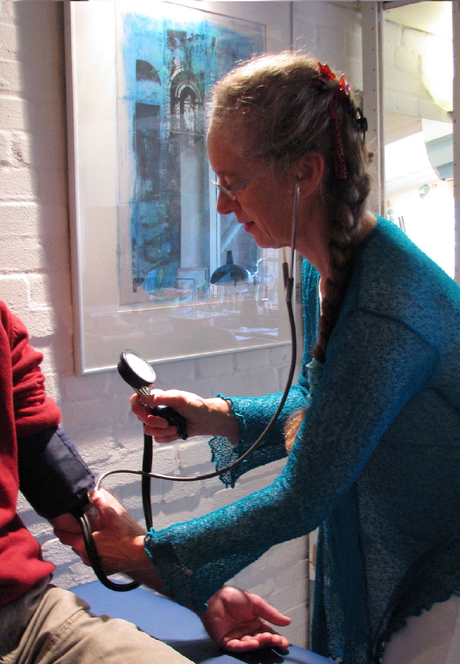 een kleine medische keuring waarbij onder andere de bloeddruk gemeten wordt